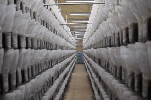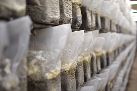 種菌を接種した培地を「培養」していく工程です。培養によるハナビラタケの成長期間は、2ヶ月以上にわたります。