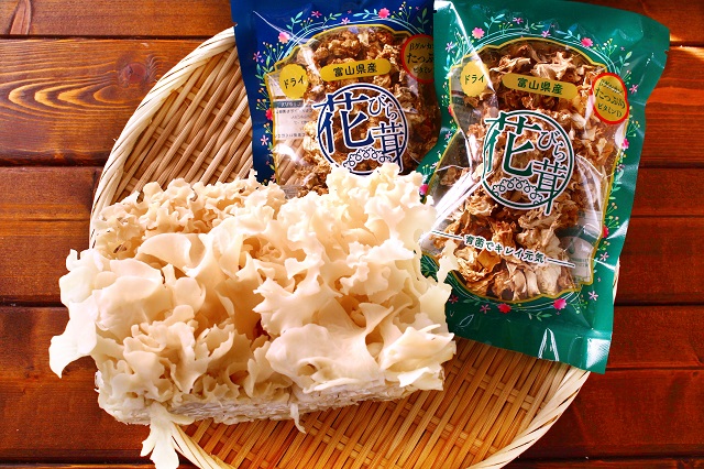 〈もりのわ〉さんの商品『はなびら茸』は、消費者の使い勝手やニーズに合うよう、新鮮な生のハナビラタケとならんでより賞味期限の長い乾燥タイプのハナビラタケも販売されています。