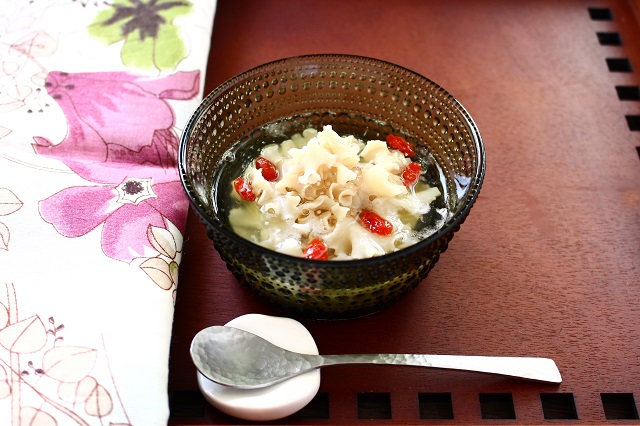 おすすめは、水に砂糖を混ぜ入れて煮立て、生のハナビラタケをさっと煮るだけのシロップ煮。少量からでも簡単に作れて、煮汁ごと冷やしておくと、餡子や白玉団子と和風スイーツにしてみたり、タピオカやクコの実などと合わせてアジアンスイーツ風にしたりといろいろ楽しむことができます。