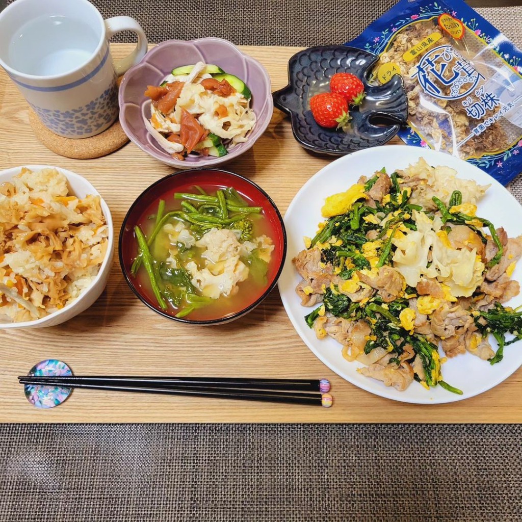 『空』様はハナビラタケを使った簡単お料理として「ハナビラタケと梅きゅうりとささみの和え物」「ハナビラタケの炊き込みご飯」「ハナビラタケ炒め物」「ハナビラタケの味噌汁」のレシピを作っていただきました。ありがとうございます!