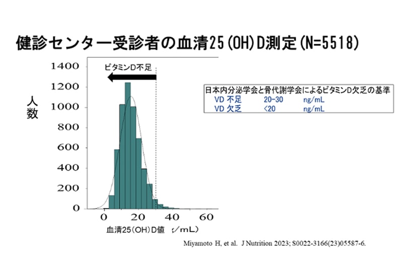 - 日本人の大半は慢性的なビタミンD不足にあり、骨の健康だけでなく心血管の健康にも影響している可能性があることが専門家の見解として述べられています。