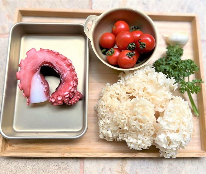 『はなびら茸とタコのパスタレシピ』をご紹介します。ぜひお試し下さい。